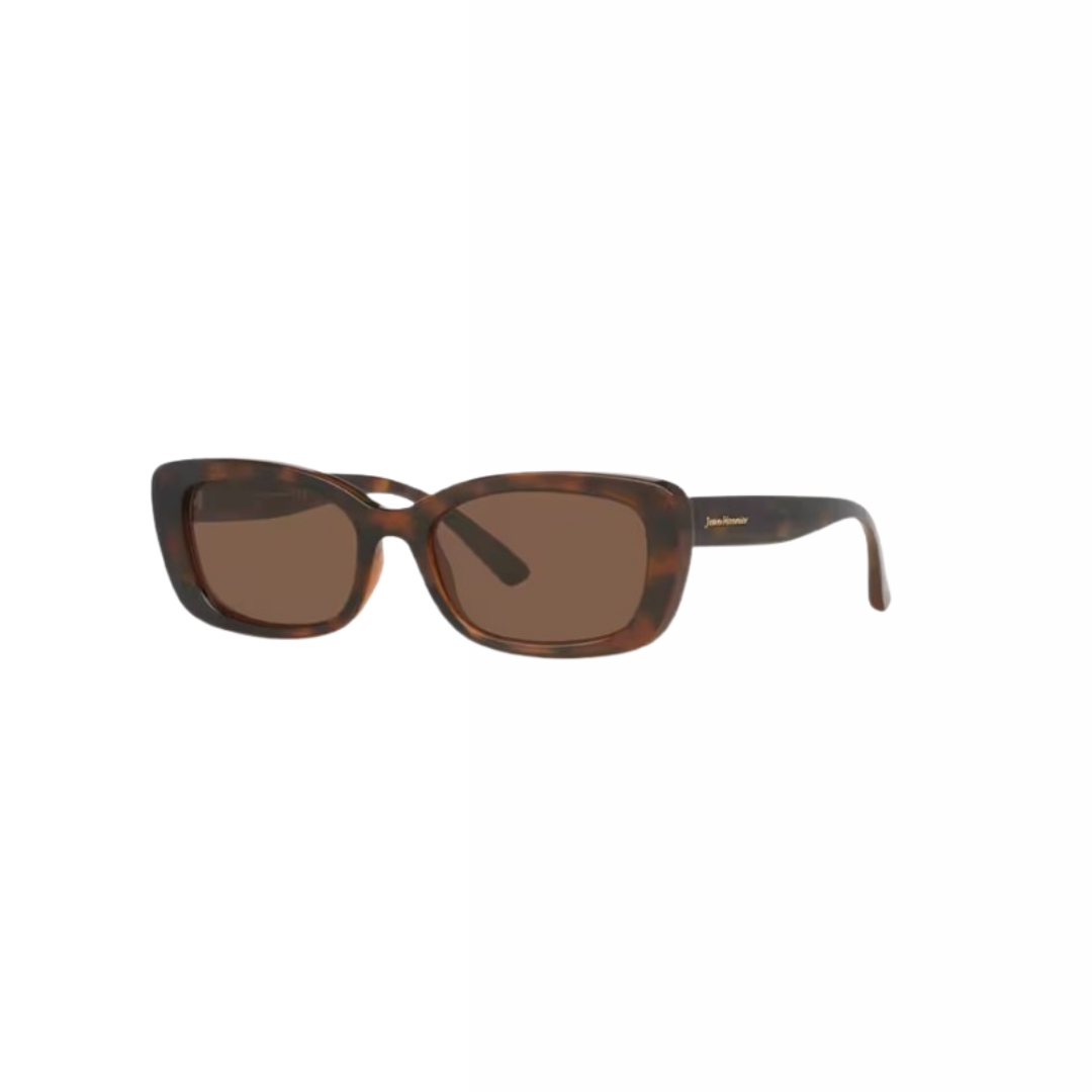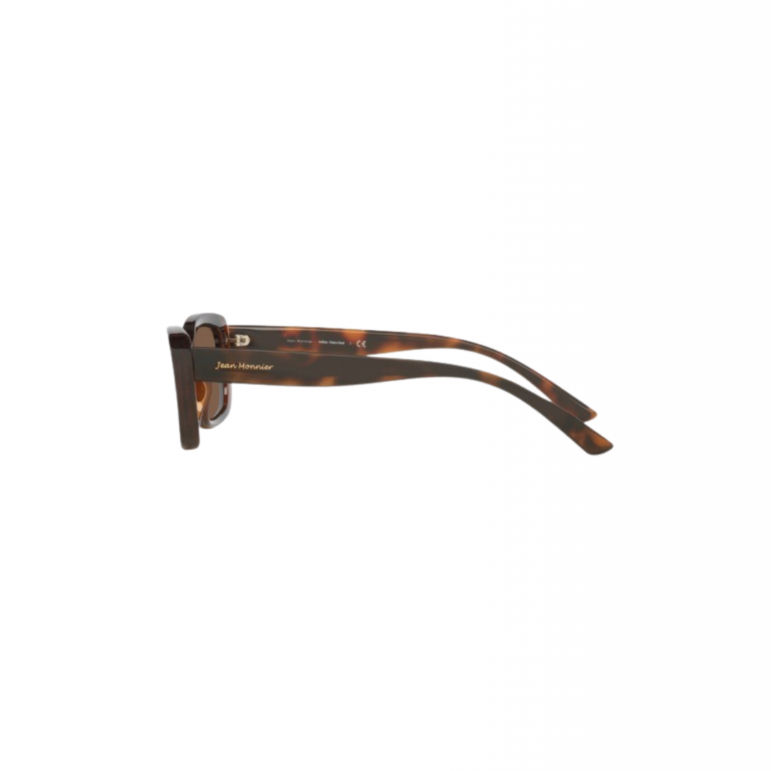 Em resumo, o óculos é um modelo de sol retangular de acetato/injetado na cor Havana-escuro, com lentes marrons de categoria 3N em policarbonato, da marca Jean Monnier.