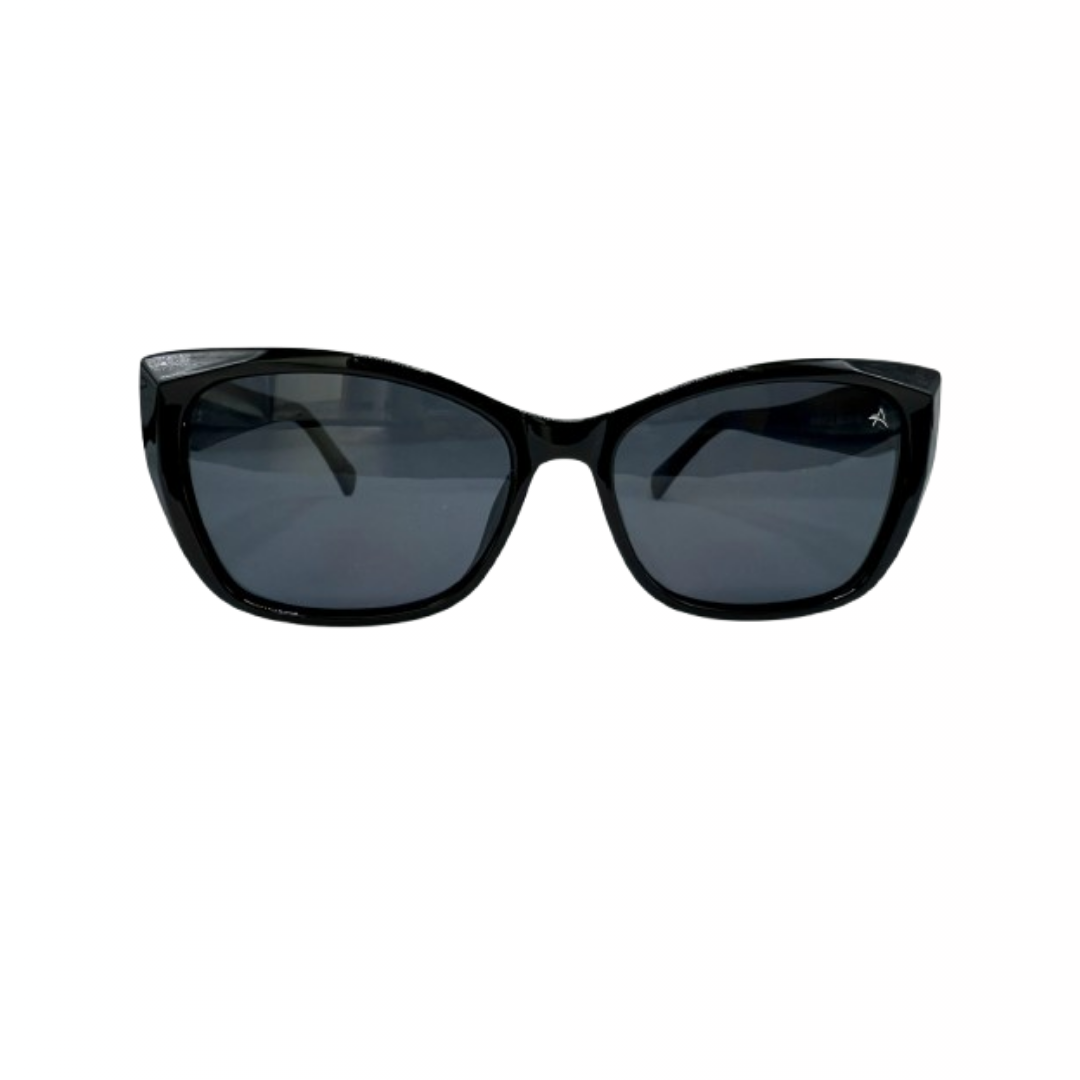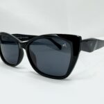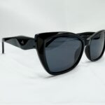 Este é um óculos de sol com design cat-eye moderno e ousado, na cor preta brilhante. O diferencial do produto são as hastes com um design único em forma de onda, que proporcionam estilo e um ajuste confortável.